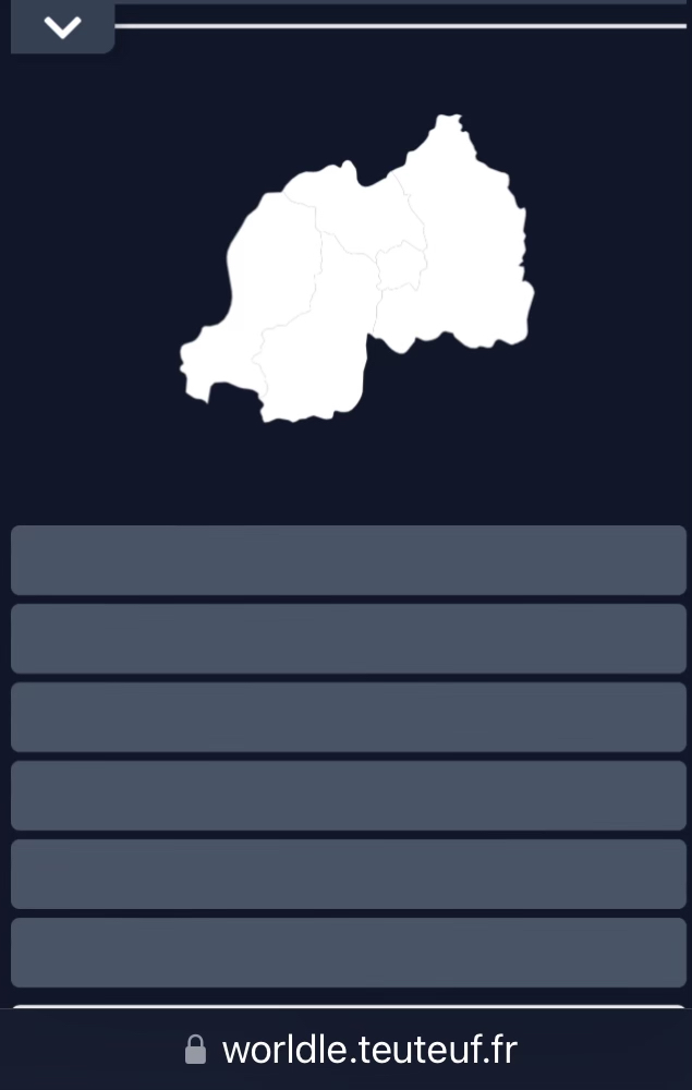A year ago I learned about a site called Worldle* (no, not the one where you guess the word). On Worldle, you guess the country. Each day you see the outline of a different country and you are given 6 chances to guess it. As you make a guess, the site will tell you how close you are and in which direction you need to move. I let myself use GoogleMaps to narrow down my selections.