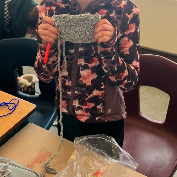 After the first few weeks, the carefully created crochet kits got mislaid by the students. Student attendance fluctuated with school trips, snow days and illness taking kids away at different times. Some more experienced students wanted to create different things than what I’d researched, and some students were content with making their own projects. Control wasn’t necessary or practical.